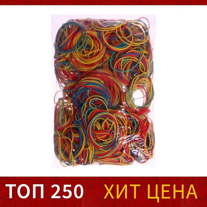 Банковская резинка цветная, 1000 грамм, длина 95 мм, диаметр - 60 мм, сечение 1,7 х 1,7 мм