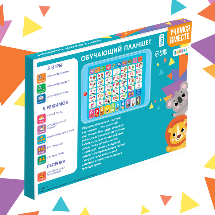 Занятия с устройством помогут ребёнку в игровой форме изучить алфавит, числа, слова, счёт. Благодаря полезным заданиям, интересным играм и вопросам малыш освоит и закрепит полученный материал.