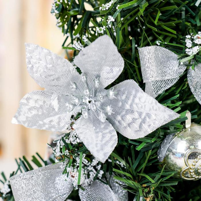 Ёлка декор "Новогодний восторг" 30 см, пуансетия серебро
