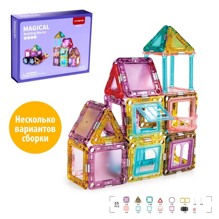 Магнитный конструктор — это набор, детали которого соединяются как по волшебству. Под действием магнитного поля элементы притягиваются друг к другу, открывая неограниченный простор для экспериментов.
