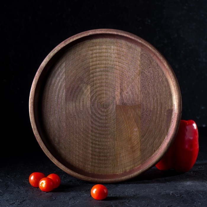 Блюдо для подачи Adelica, d=30×1,8 см, массив берёзы, потайные ручки, пропитано маслом, цвет шоколадный