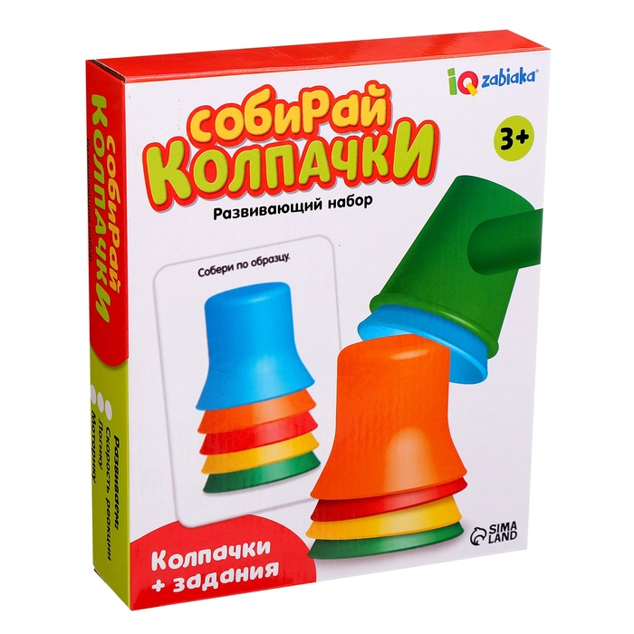В процессе игры ребёнок взаимодействует с колпачками на ручках, тем самым тренирует мелкую моторику. Карточки с логическими задачками научат кроху мыслить быстро и правильно.