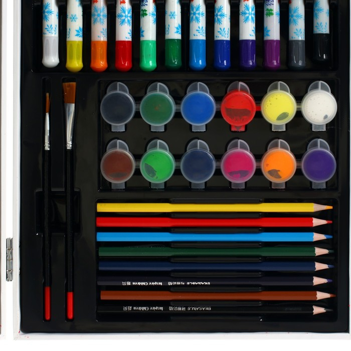 - Набор представляет собой кейс с красочным дизайном и грамотно подобранным наполнением.