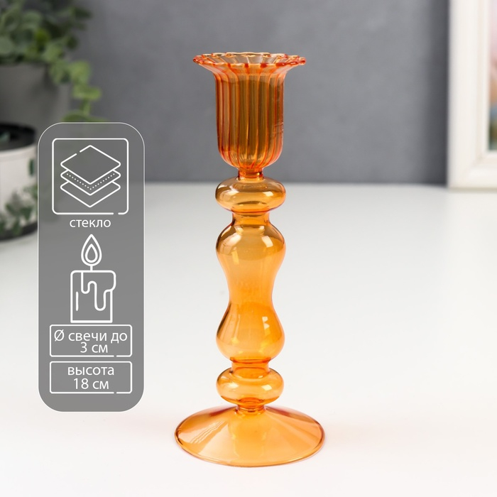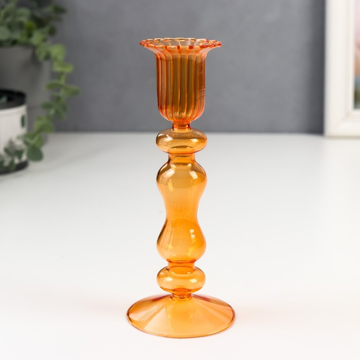 Подсвечник стекло на 1 свечу "Гаронн" прозрачный оранж 18х7,5х7,5 см