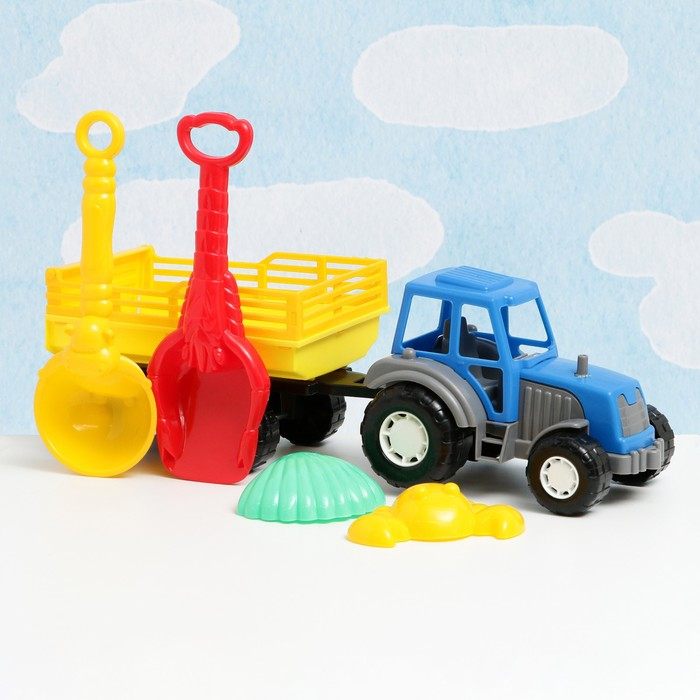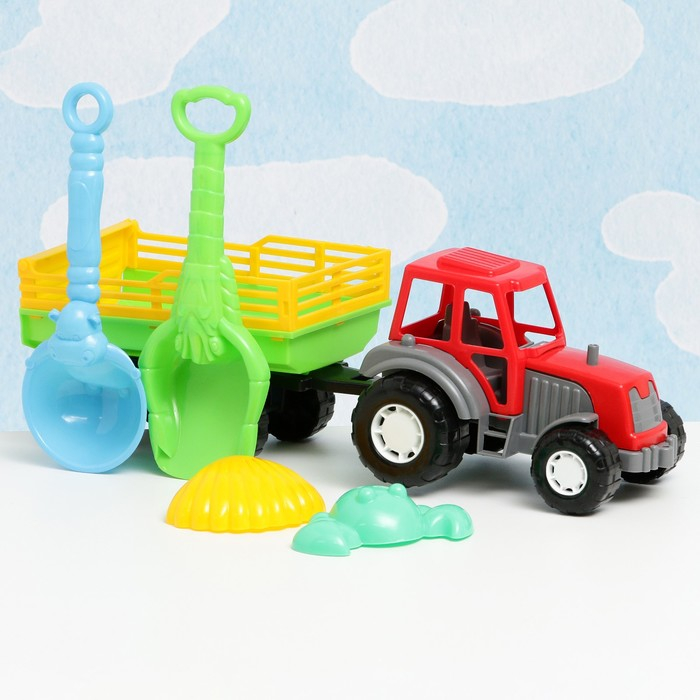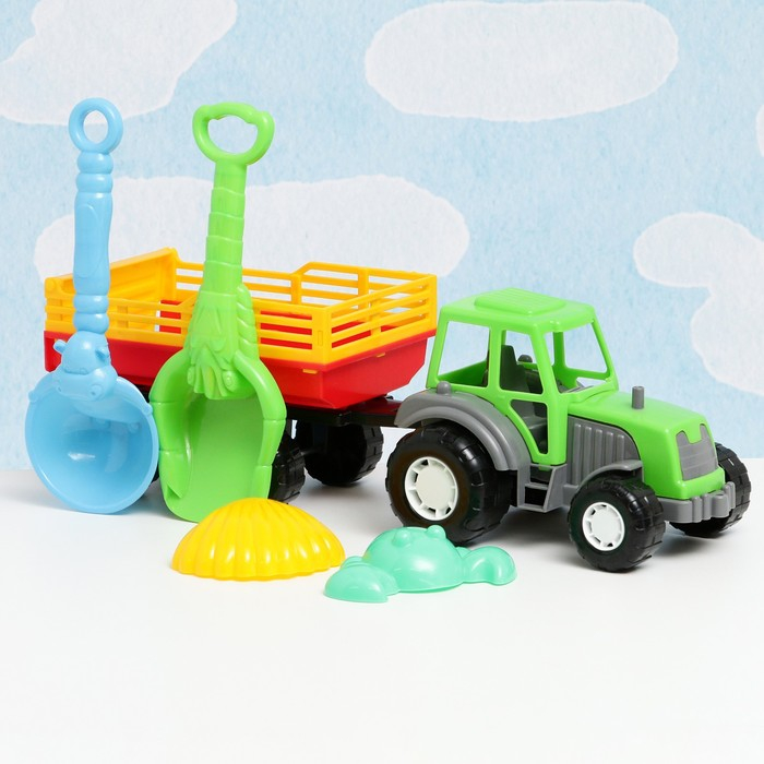 Набор детский "Трактор с прицепом": 5 игрушек для песочницы, пластик, 40 х 12 х 13 см, микс