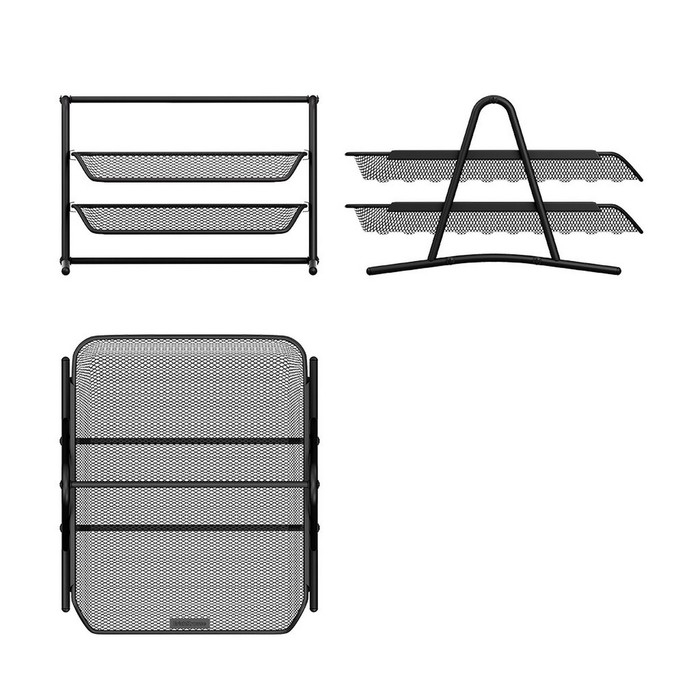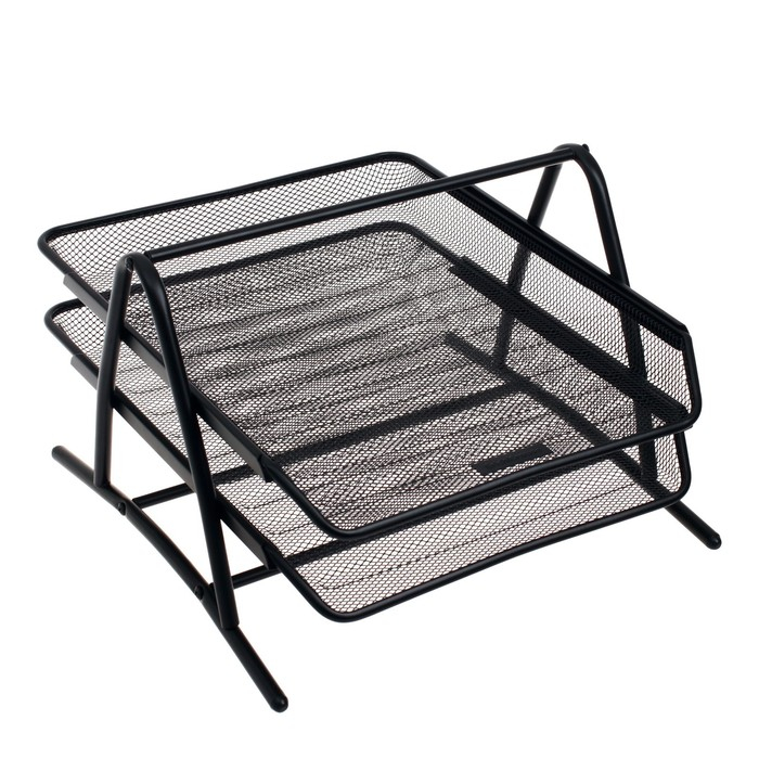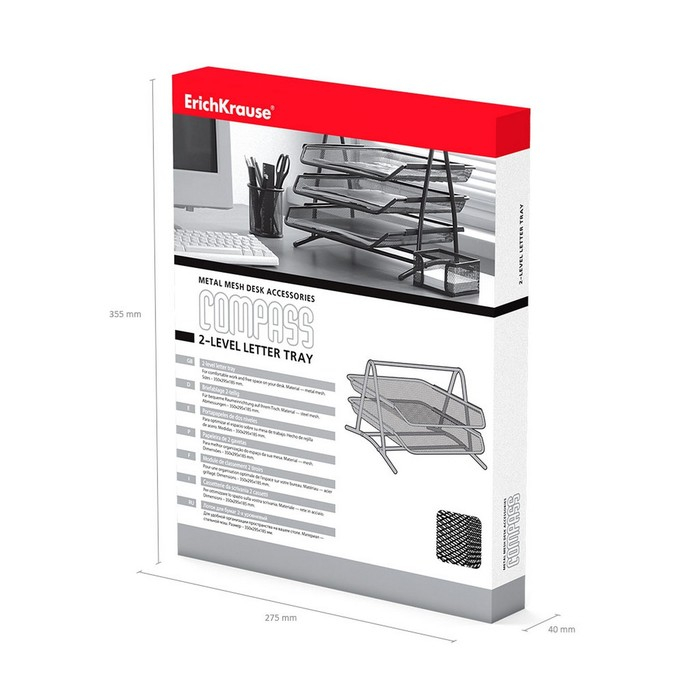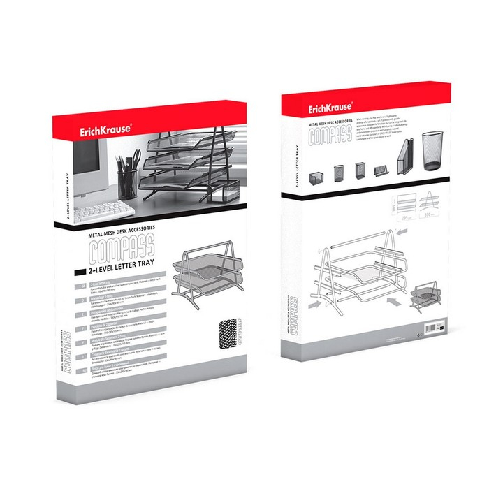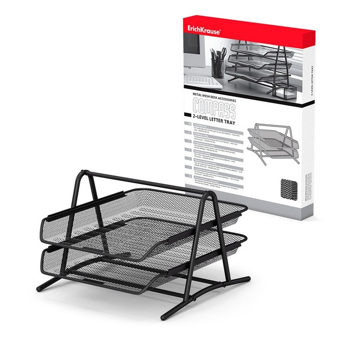 Лоток для бумаг горизонтальный 2-х уровневый, ErichKrause Compass Classic, металлическая сетка, чёрный