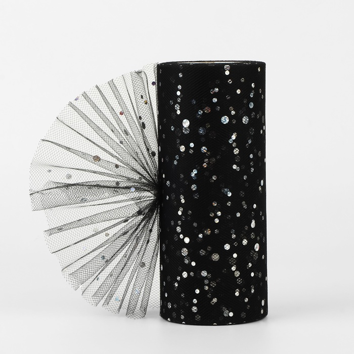 Фатин с блёстками, 15 см, 11 ± 1 г/кв.м, 23 ± 1 м, цвет чёрный №21