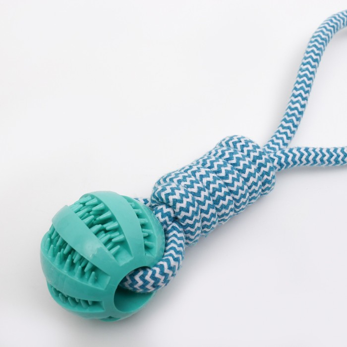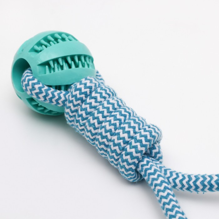 Игрушка канатная плетёная с мячом, до 30 см, до 120 г, голубая