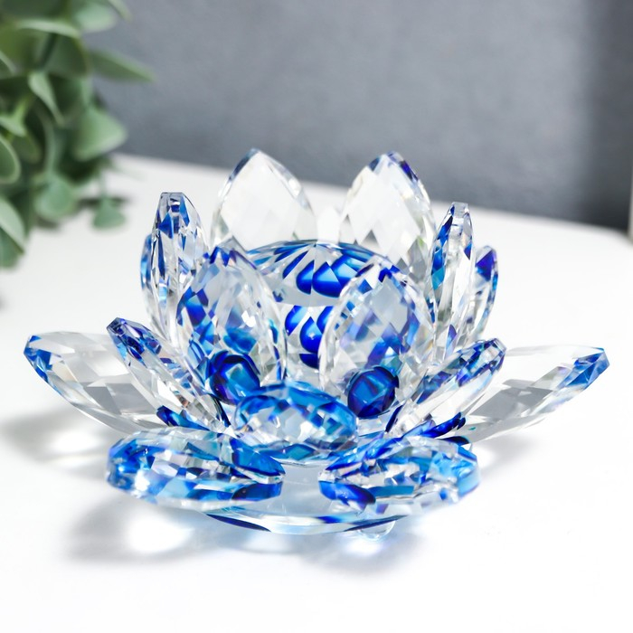 Сувенир стекло "Лотос кристалл трехъярусный голубая радуга" d=11 см