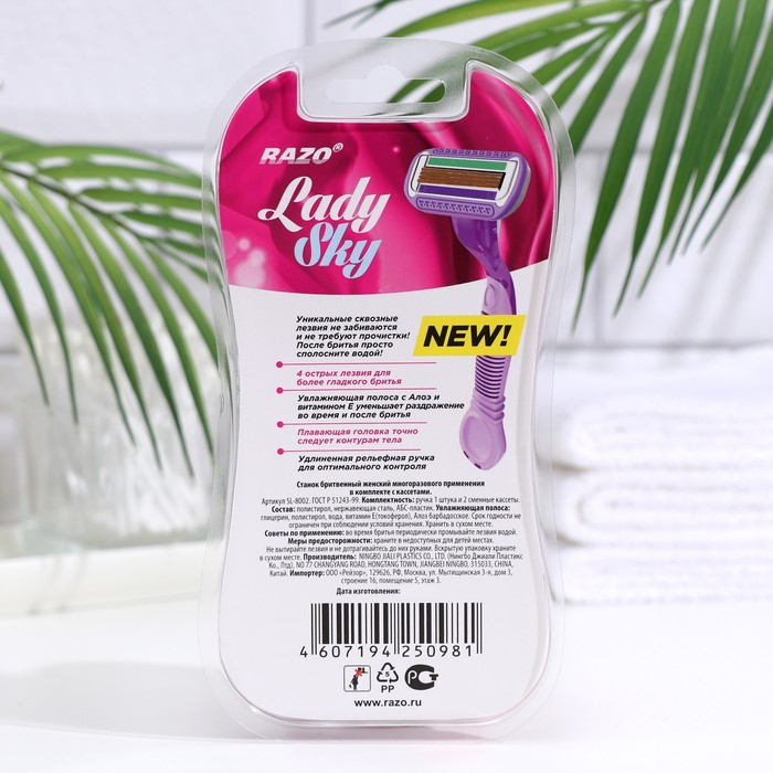 Станок бритвенный женский Razo LadySky, 4 лезвия + 2 сменные кассеты