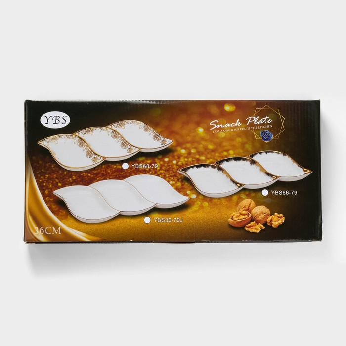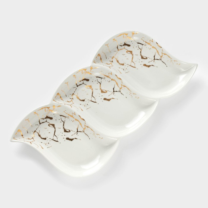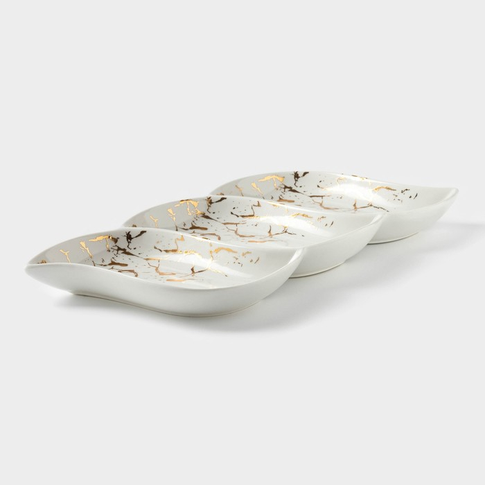 Менажница керамическая 3 ячейки «Марбл», 36×17×3 см, цвет белый