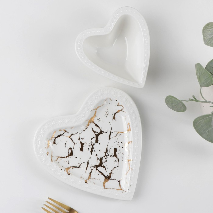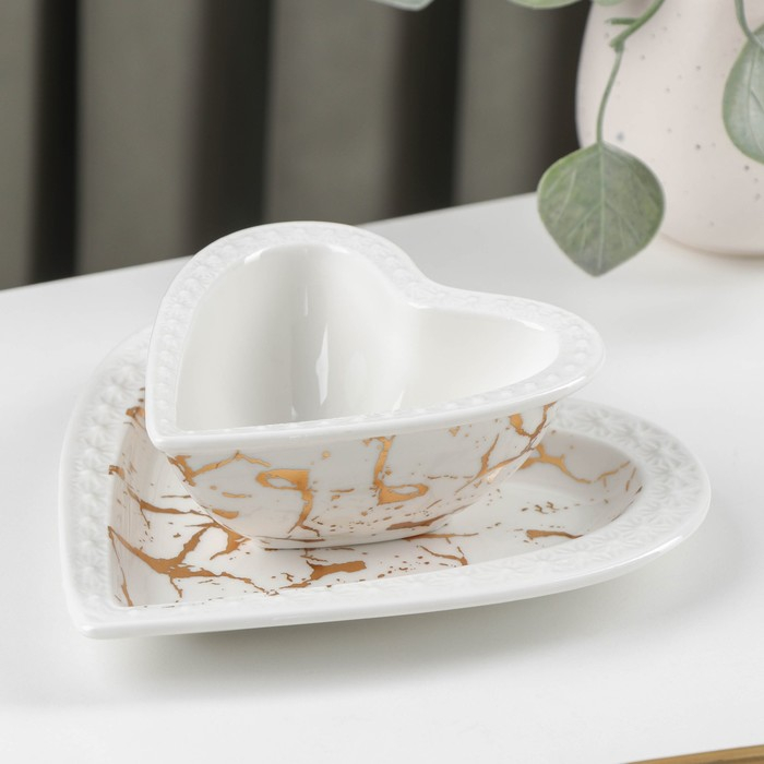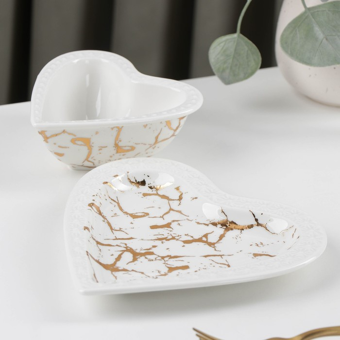 Набор керамический столовый «Марбл», 2 предмета: салатник 150 мл, блюдо 16,5×17×2 см, цвет белый
