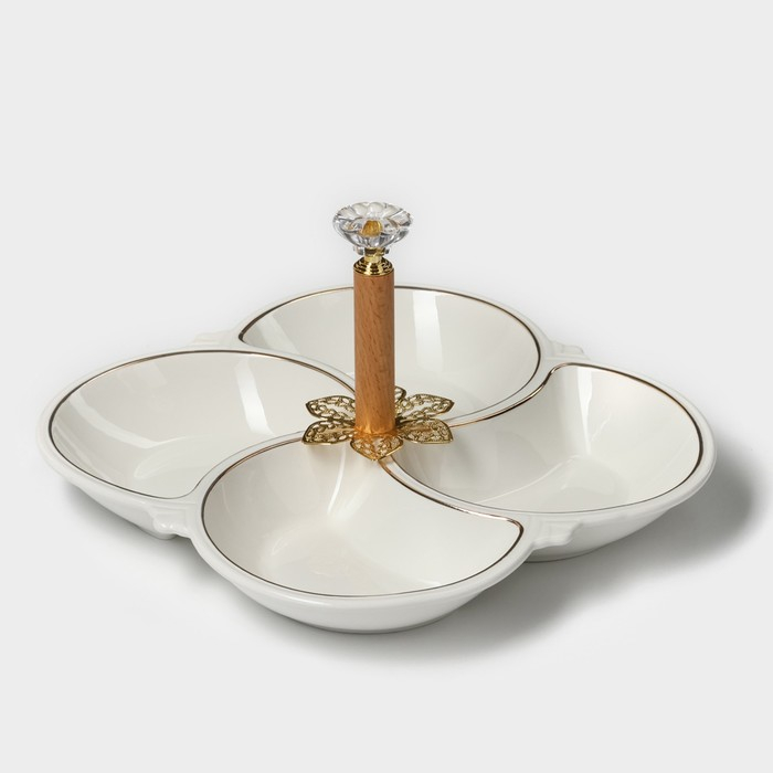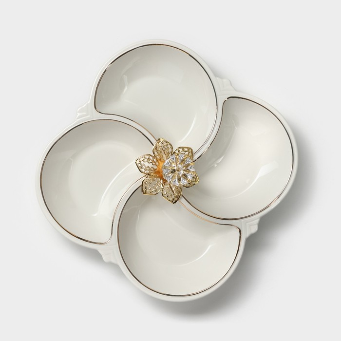 Менажница керамическая 4 ячейки «Богема», 21×3,3 см, цвет белый