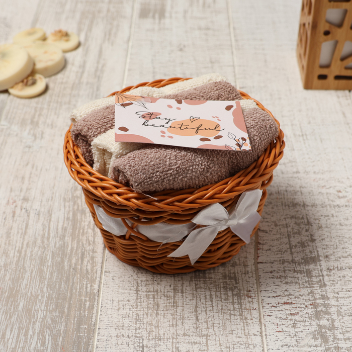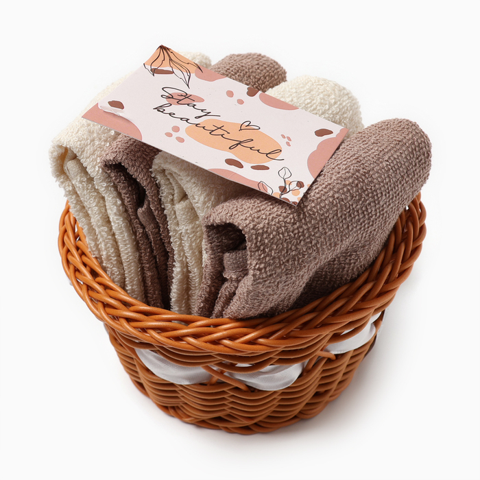 Набор полотенец в корзинке Этель "Stay Beautiful" 30х30шт - 4 шт, цв. коричневый, 100%хл