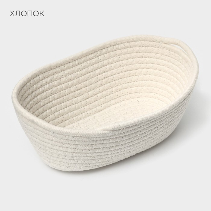Корзина для хранения плетёная ручной работы LaDо́m «Вера», хлопок, 28×16×10 см, цвет белый