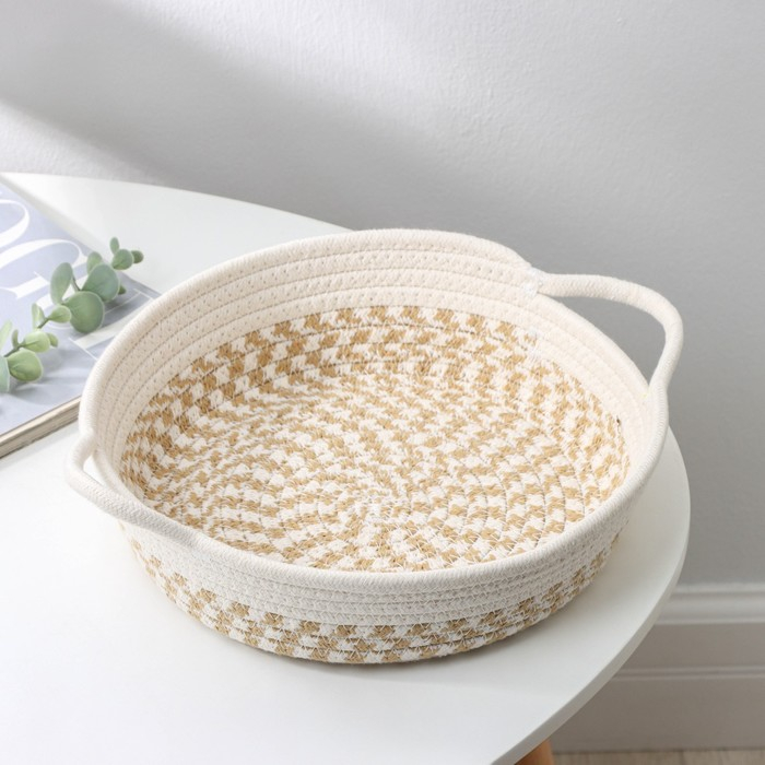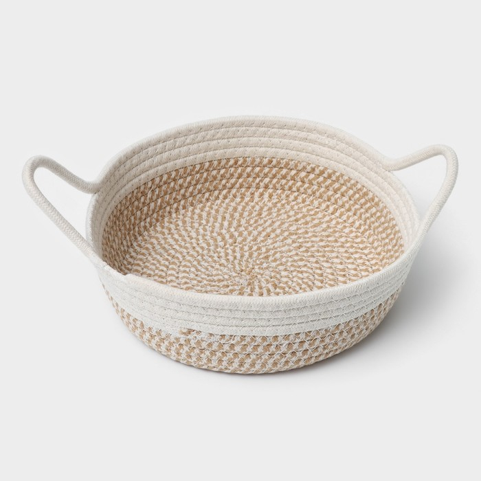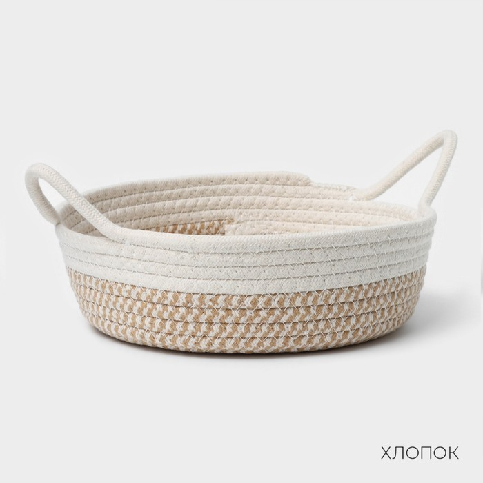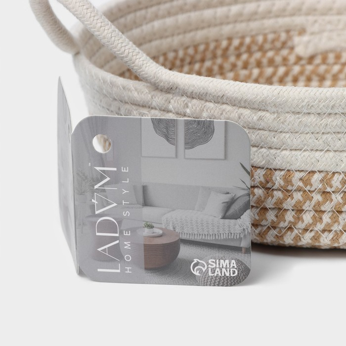 Корзина для хранения плетёная ручной работы LaDо́m «Визави», хлопок, с ручками, 34×24×7 см, цвет бежевый