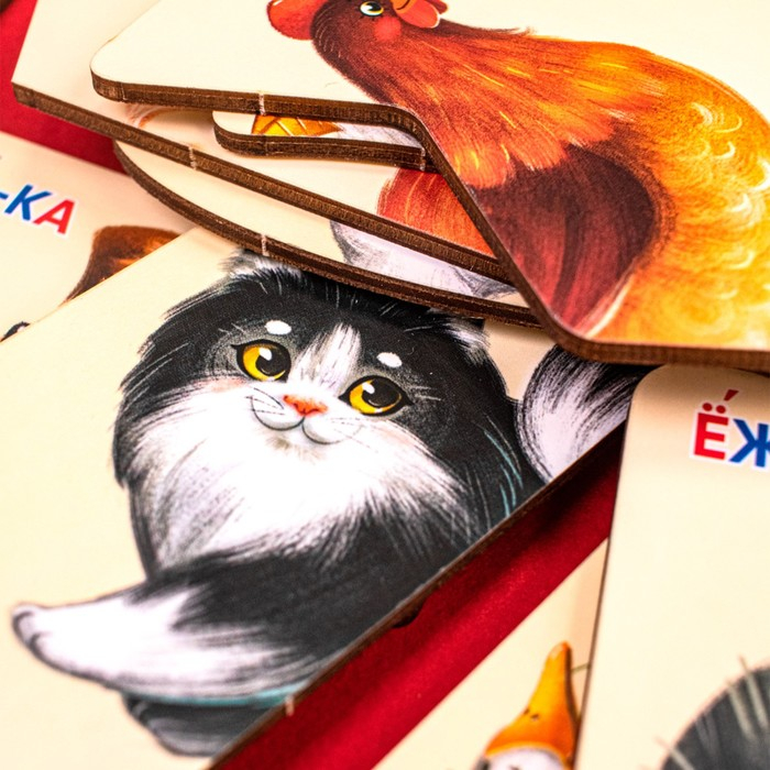 - В комплекте есть коробка, в которой удобно хранить картинки-половинки.