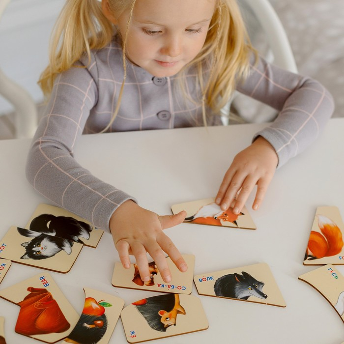 - Картинки-половинки с раннего возраста знакомят ребёнка с окружающим миром и развивают у него мелкую моторику, образное мышление, внимание, умение воспринимать связь между частью и целым.