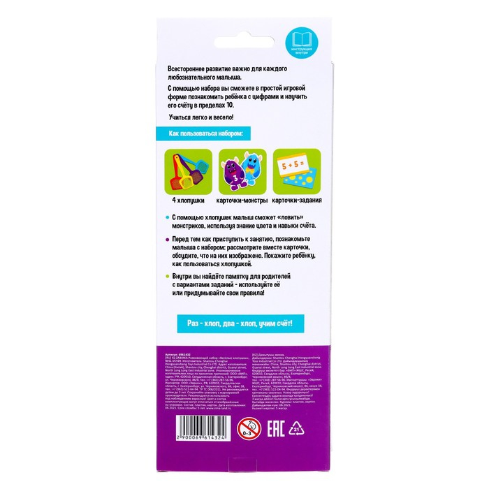 «Весёлые хлопушки» — развивающий набор для детей от 3 лет. С увлекательной игрой малыш весело и с пользой проведёт время. Ребёнку предстоит поймать вредных монстриков с помощью хлопушек.