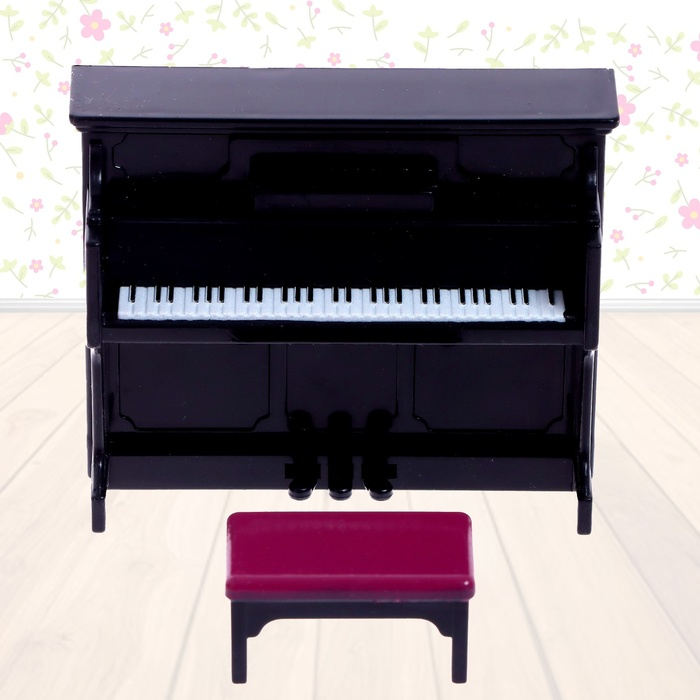 - Мебель и другие предметы интерьера: пианино, банкетка, торшер, стол, 2 кресла.