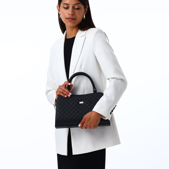 Сумка сочетает в себе изысканность и практичность. Жёсткий каркас и компактные размеры (31 х 10 х 20 см) позволяют сохранять форму и обеспечивают удобное хранение вещей. Модель оснащена одним внешним карманом, что позволяет быстро получить доступ к мелочам, а надёжная молния гарантирует сохранность содержимого.