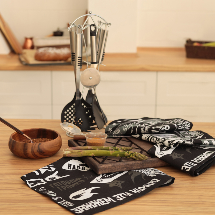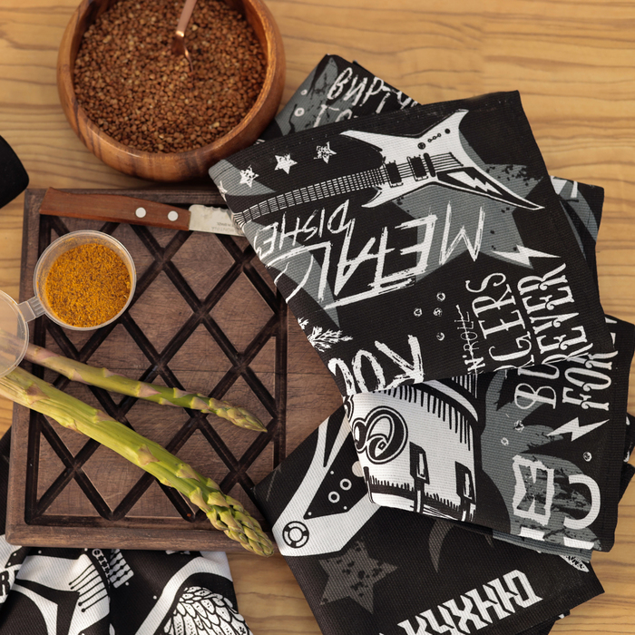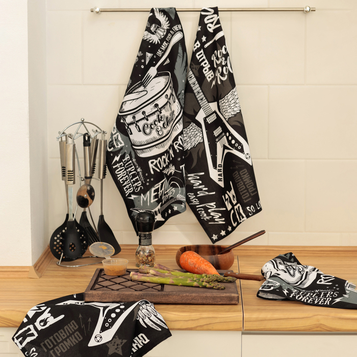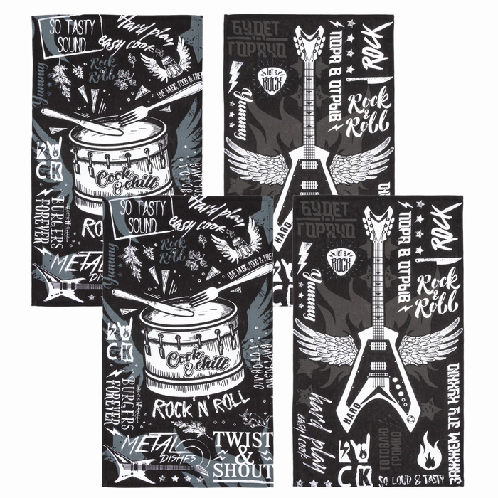 Набор кухонных полотенец Доляна Rock'n'roll 35х60см-4шт, 100% хл