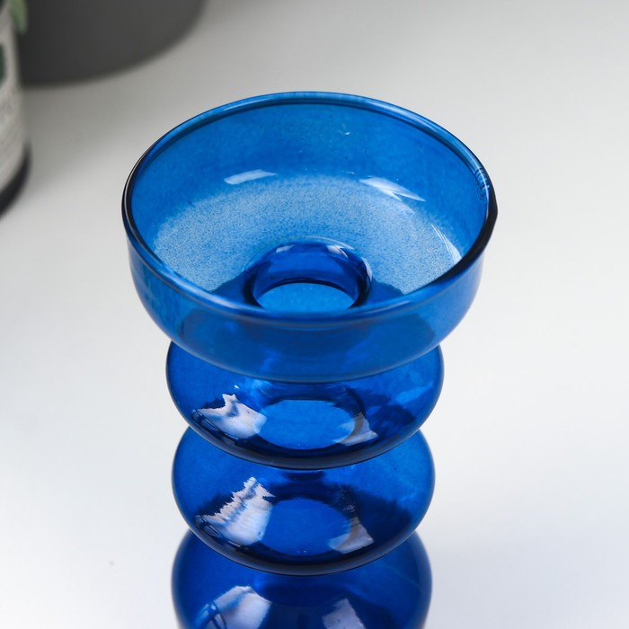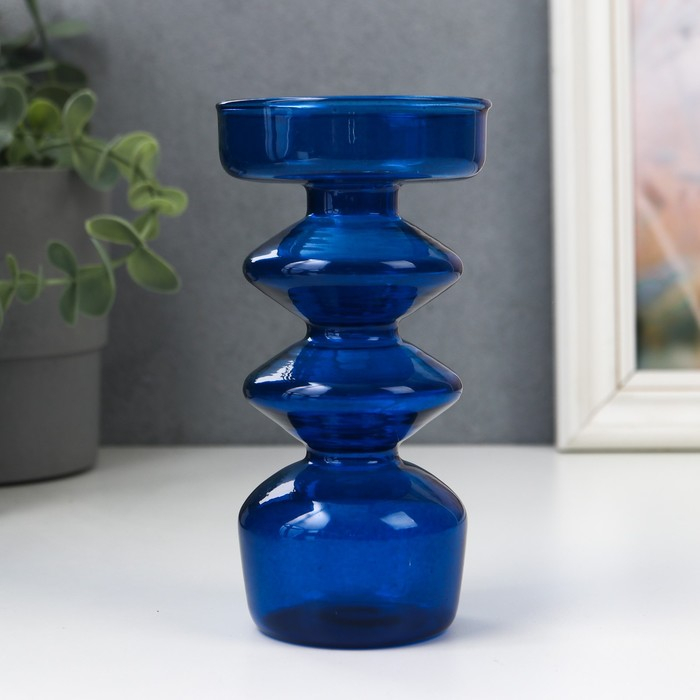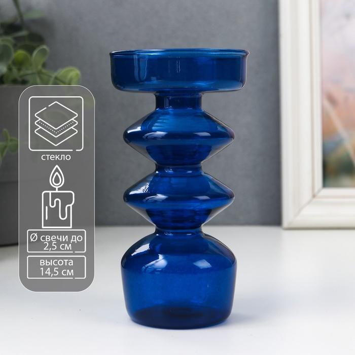 Подсвечник стекло на 1 свечу "Фигурный" синий 14,5х7х7 см
