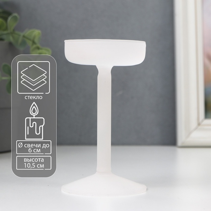 Подсвечник стекло на 1 свечу "Высокая ножка" белый d до 6 см 10,5х6х6 см