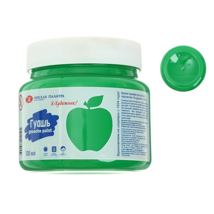 Гуашь в банке 500 мл, ЗХК "Я - Художник!" зелёная светлая (23024717)