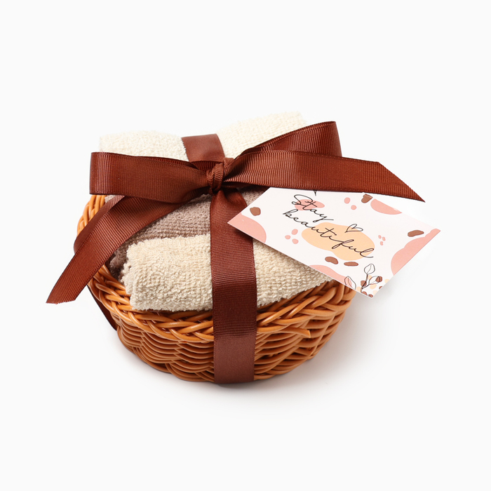 Набор махровых декор. салфеток Этель "Весеннее настроение" 30х30шт -3 шт,цв.коричнев