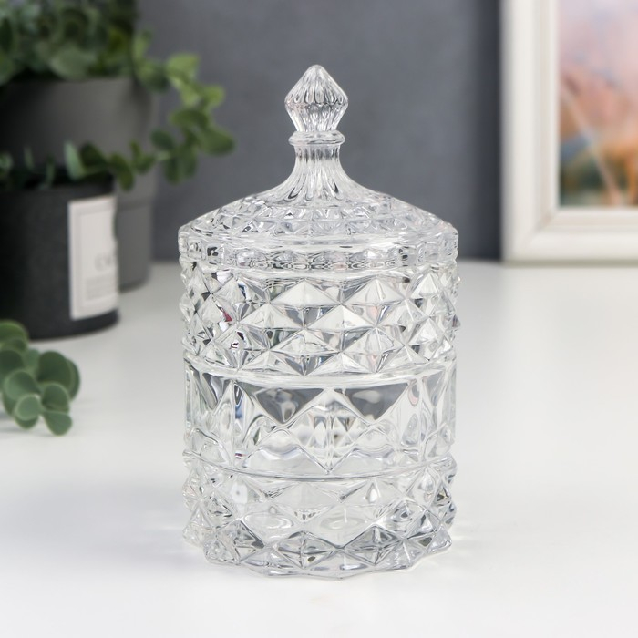 Шкатулка стекло цилиндр "Ромбики и купол" прозрачный 16х8,5х8,5 см
