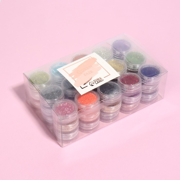 Блёстки для декора, мелкие, набор 32 баночки, в ПВХ - коробке, разноцветные