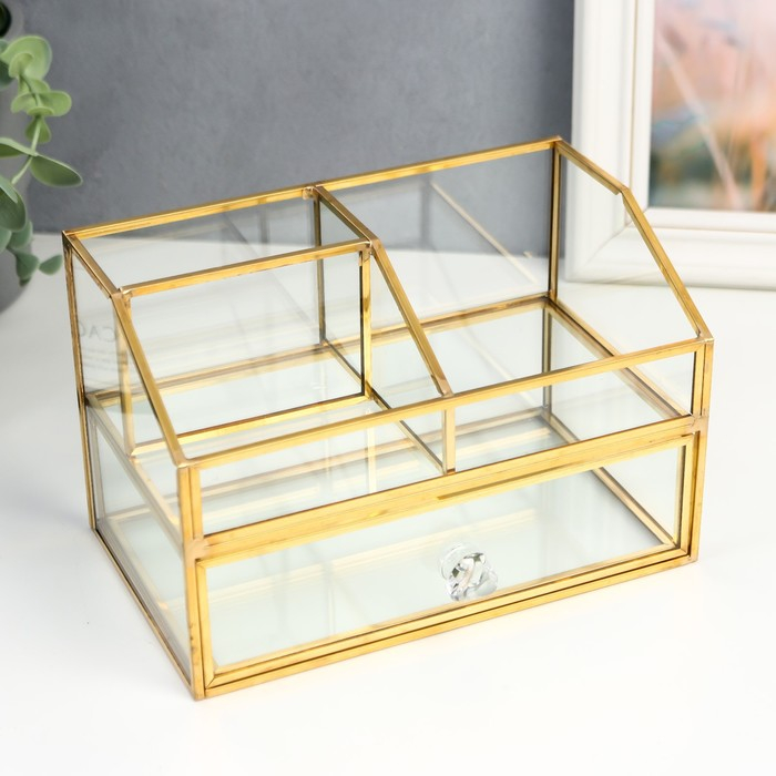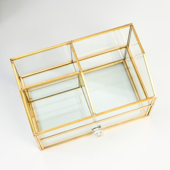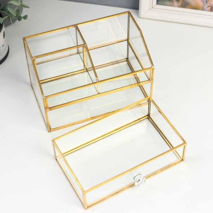 Шкатулка стекло для косметики и украшений с ящичком "Золотые грани" 12х11,4х18,8 см