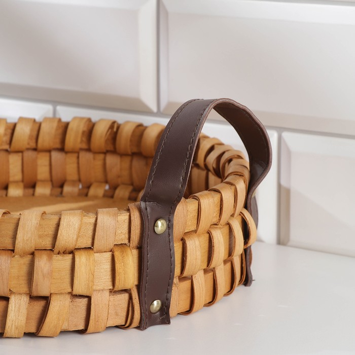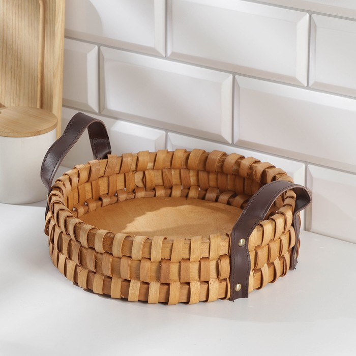 Поднос-корзинка для завтрака Доляна «Массив», с ручками из искусственной кожи, d=25 см