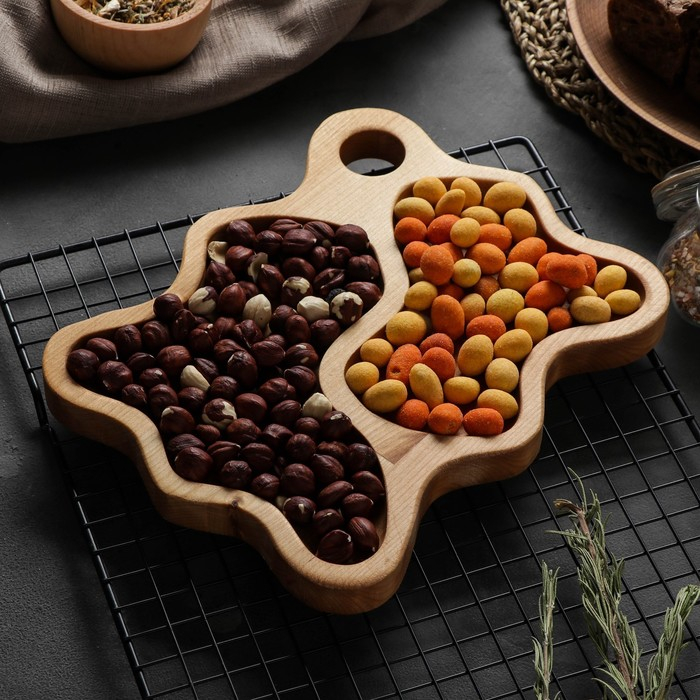 Никак не можете отучить себя от вредных перекусов? Изящная менажница из натурального дерева не даст вам пройти мимо орешков и сухофруктов. Изделие станет стильным и уютным элементом вашей кухни и незаменимым аксессуаром для сервировки стола.