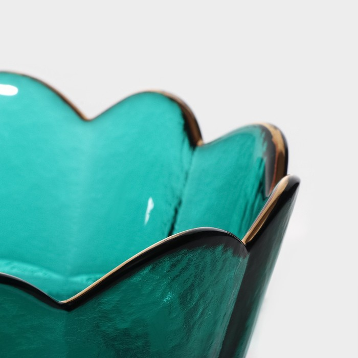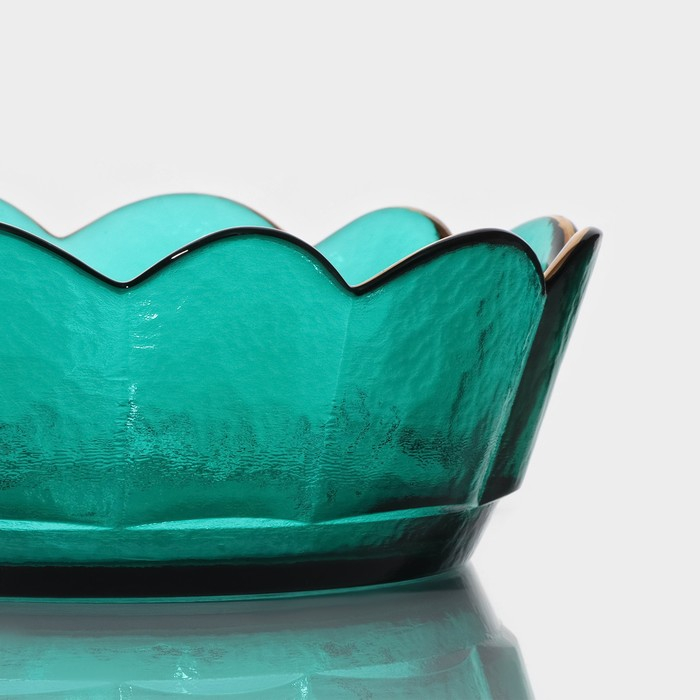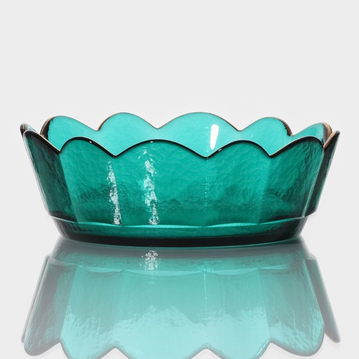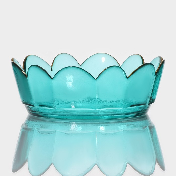 Салатник стеклянный «Вулкан», 680 мл, 16×16×7,5 см, цвет голубой