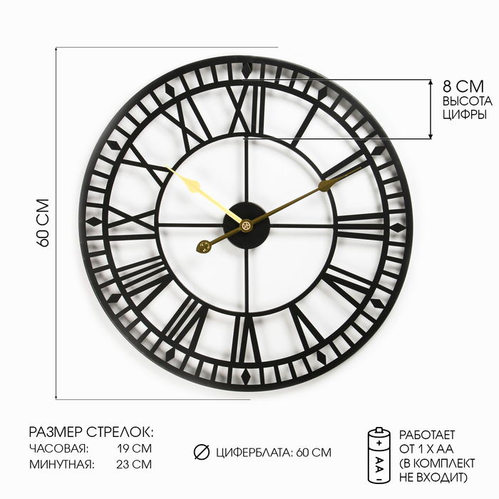 Часы настенные, серия: Ажур, "Манльеу", плавный ход, d-15 см, 61 x 44 см