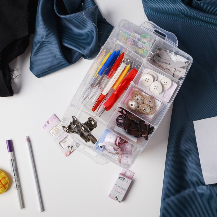 Органайзер для рукоделия, со съёмными ячейками, 3 яруса по 10 отделений, 24,5 × 16,5 × 18 см, с ручкой, цвет прозрачный