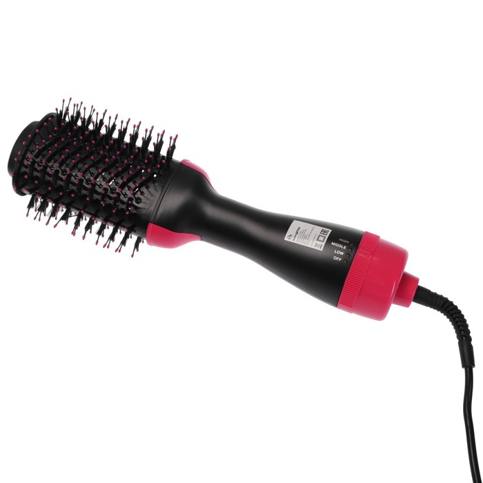 Фен-щётка Luazon LFS-04, 1000 Вт, 3 скорости, 3 режима, чёрно-розовая