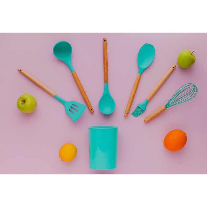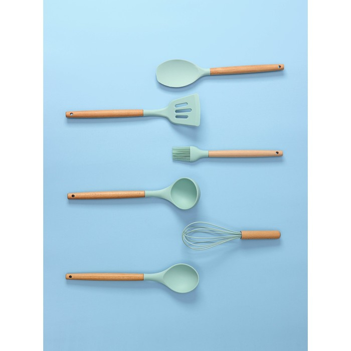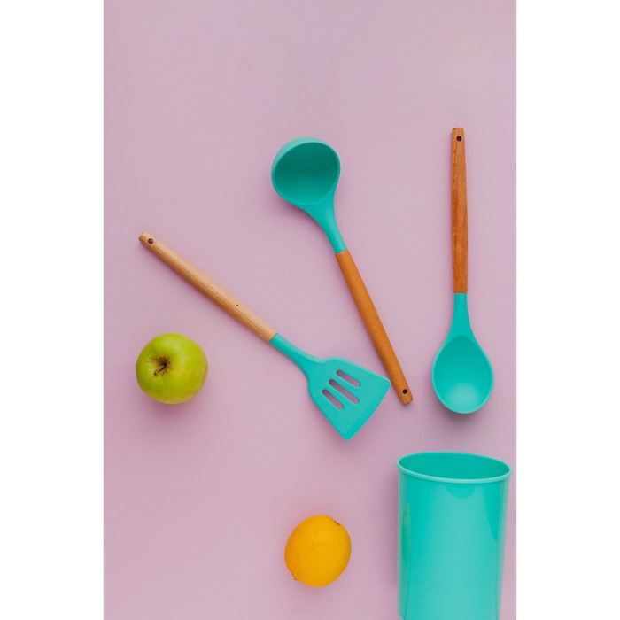 Набор кухонных принадлежностей Доляна «Лиам», 7 предметов, 33×12,5×12,5 см, цвет бирюзовый