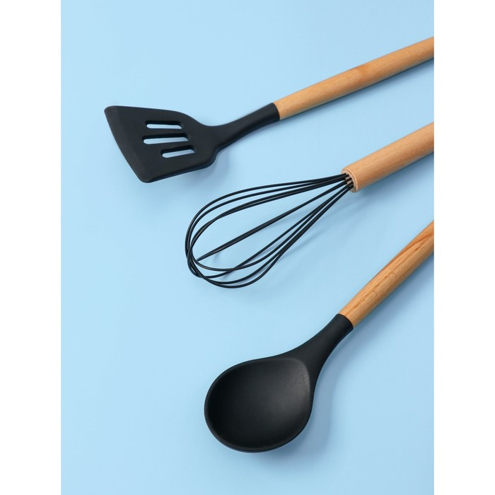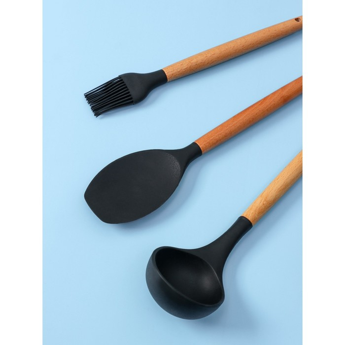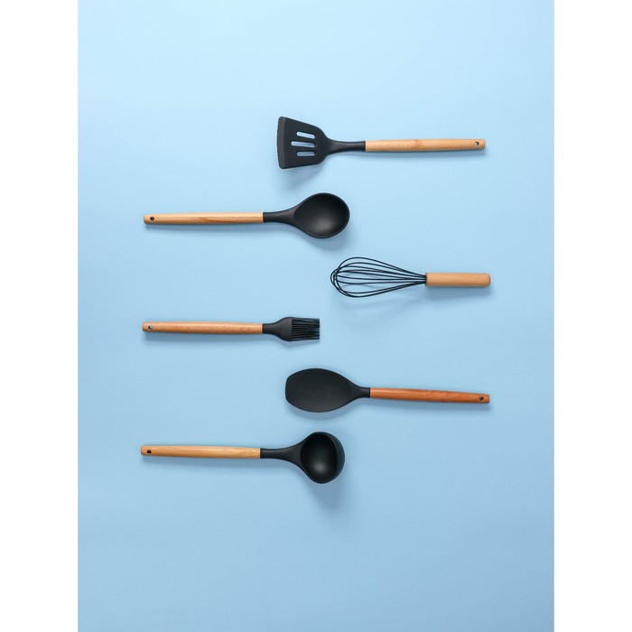 Набор кухонных принадлежностей Доляна «Лиам», 7 предметов, 33×12,5×12,5 см, цвет чёрный