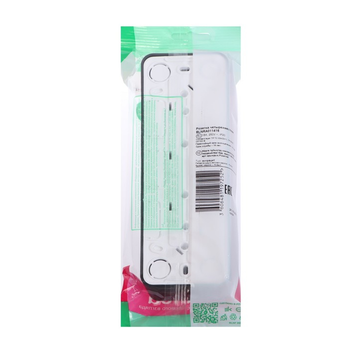 Розетка четверная SE Blanca, 16 А, 250 В, накладная, с з/к, шторки, IP20, антр., BLNRA011416