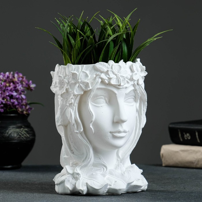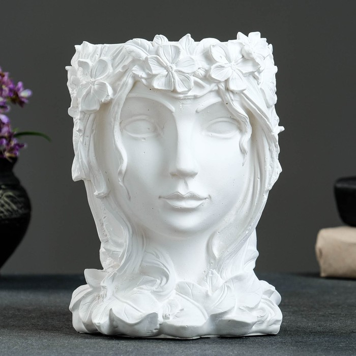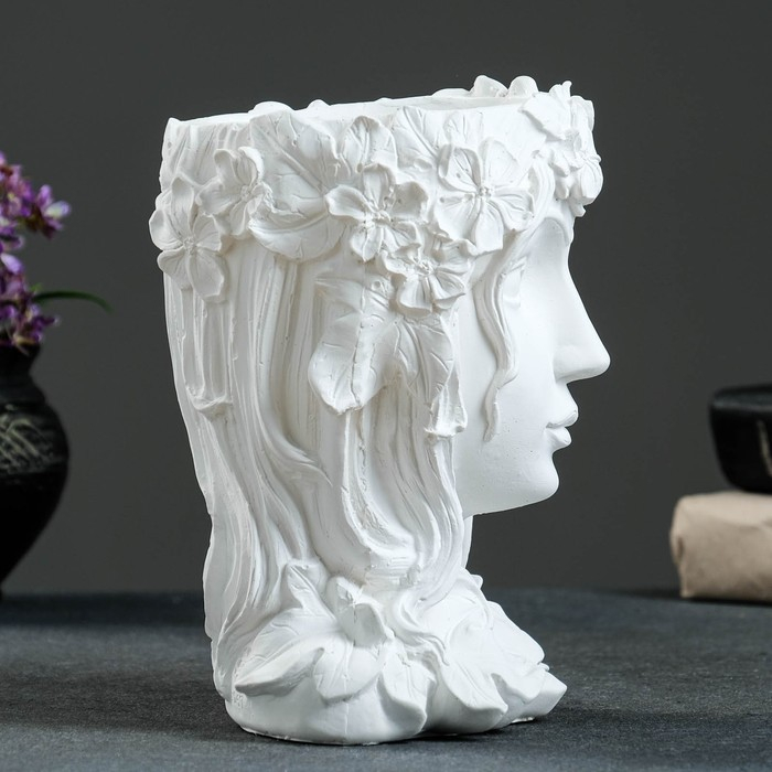 Кашпо - органайзер "Девушка с венком" белая, 14х19х14см