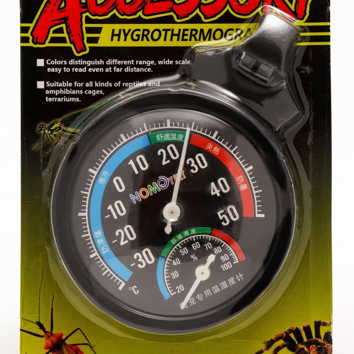 Аналоговый термометр + гидрометр NomoyPet - это незаменимый инструмент для тех, кто заботится о своих рептилиях и других животных, обитающих в террариуме. Этот прибор позволяет контролировать температуру и влажность внутри террариума, что является важным фактором для здоровья и комфорта животных.