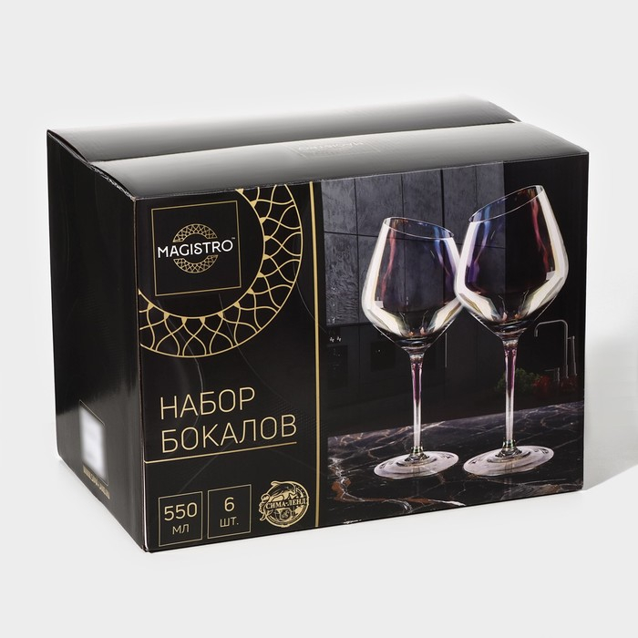 Набор бокалов для вина стеклянный Magistro «Иллюзия», 550 мл, 10×24 см, 6 шт, цвет перламутровый