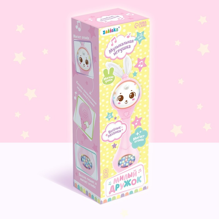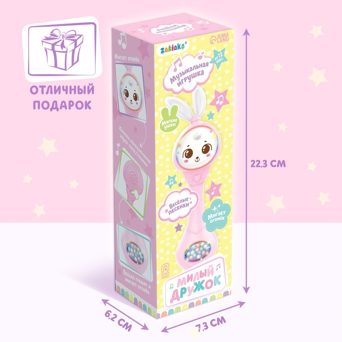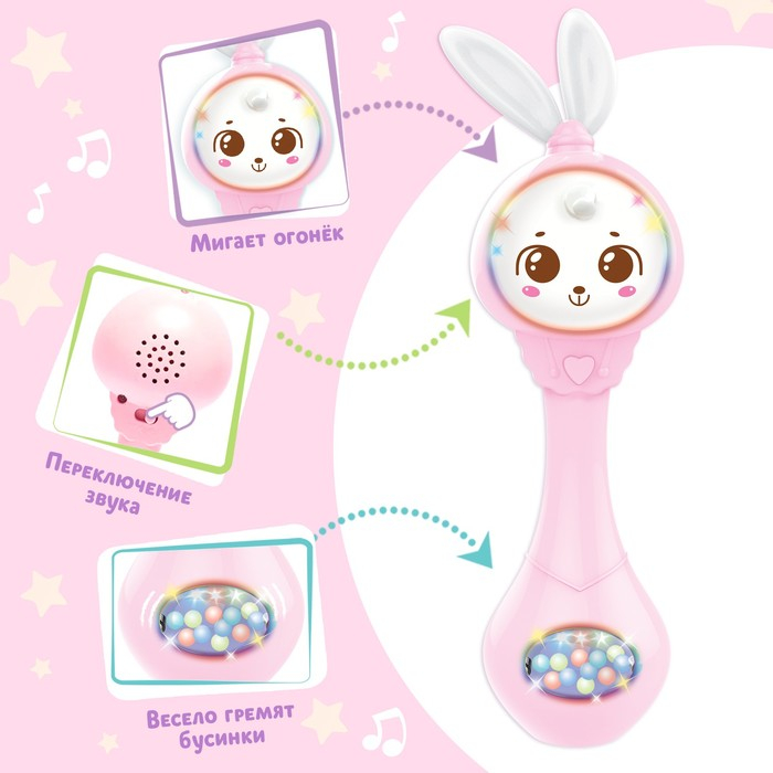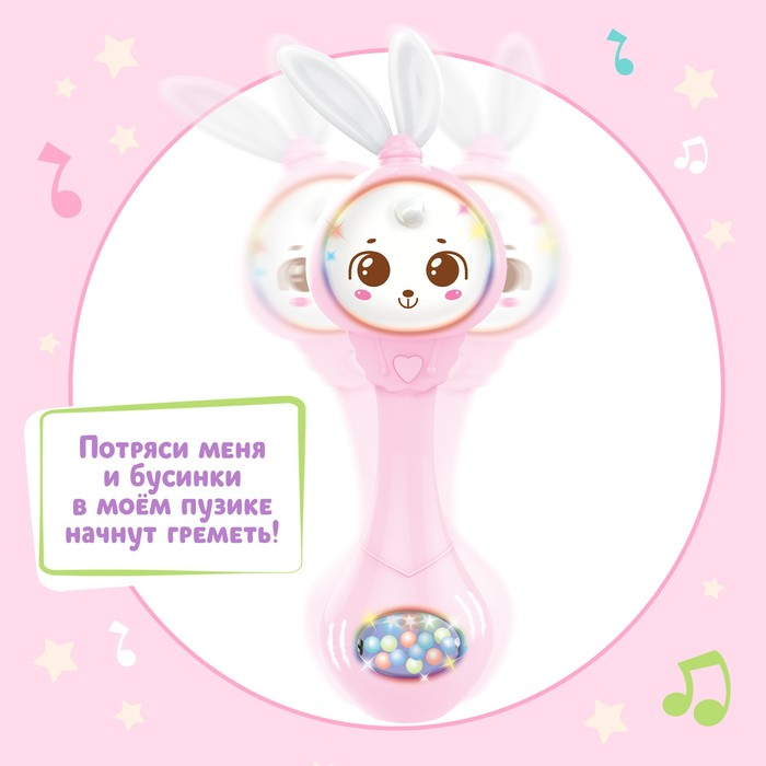 Музыкальная погремушка «Милый дружок», звук, свет, цвет розовый