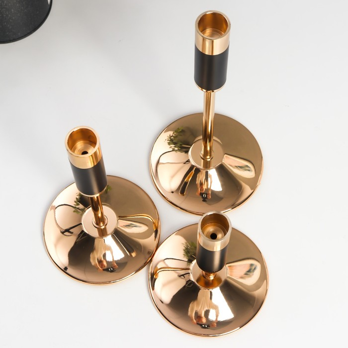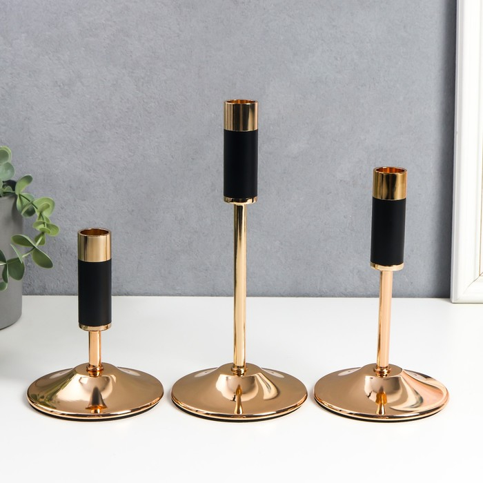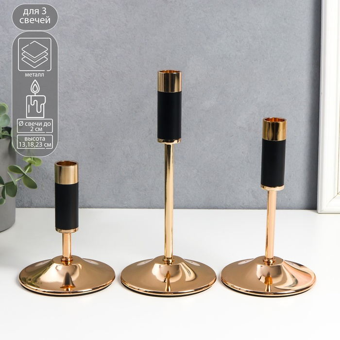 Подсвечник металл "Уэльс" набор 3 шт чёрный с золотом 13,5х10х10, 18,5х10х10, 23,5х10х1 см