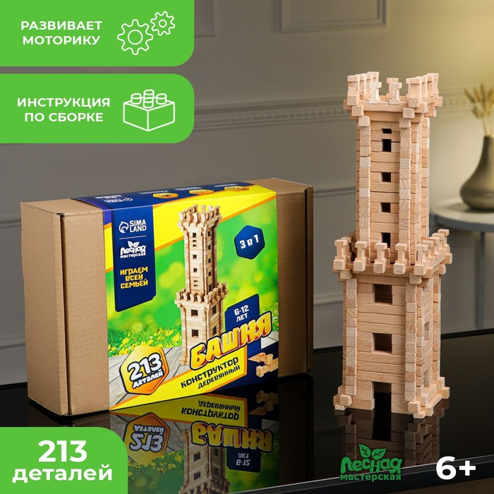 Конструктор деревянный «Башня», 213 деталей, массив бука