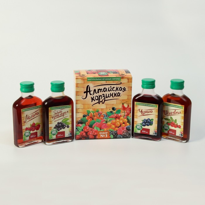 Подарочный набор сиропов Алтайская корзинка №3, 4 шт. по 100 мл