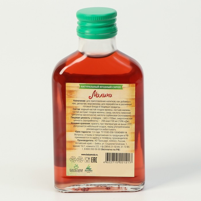Состав: натуральные водные экстракты плодов и листьев ягодных растений, сахар, лимонная кислота, сорбиновая кислота.